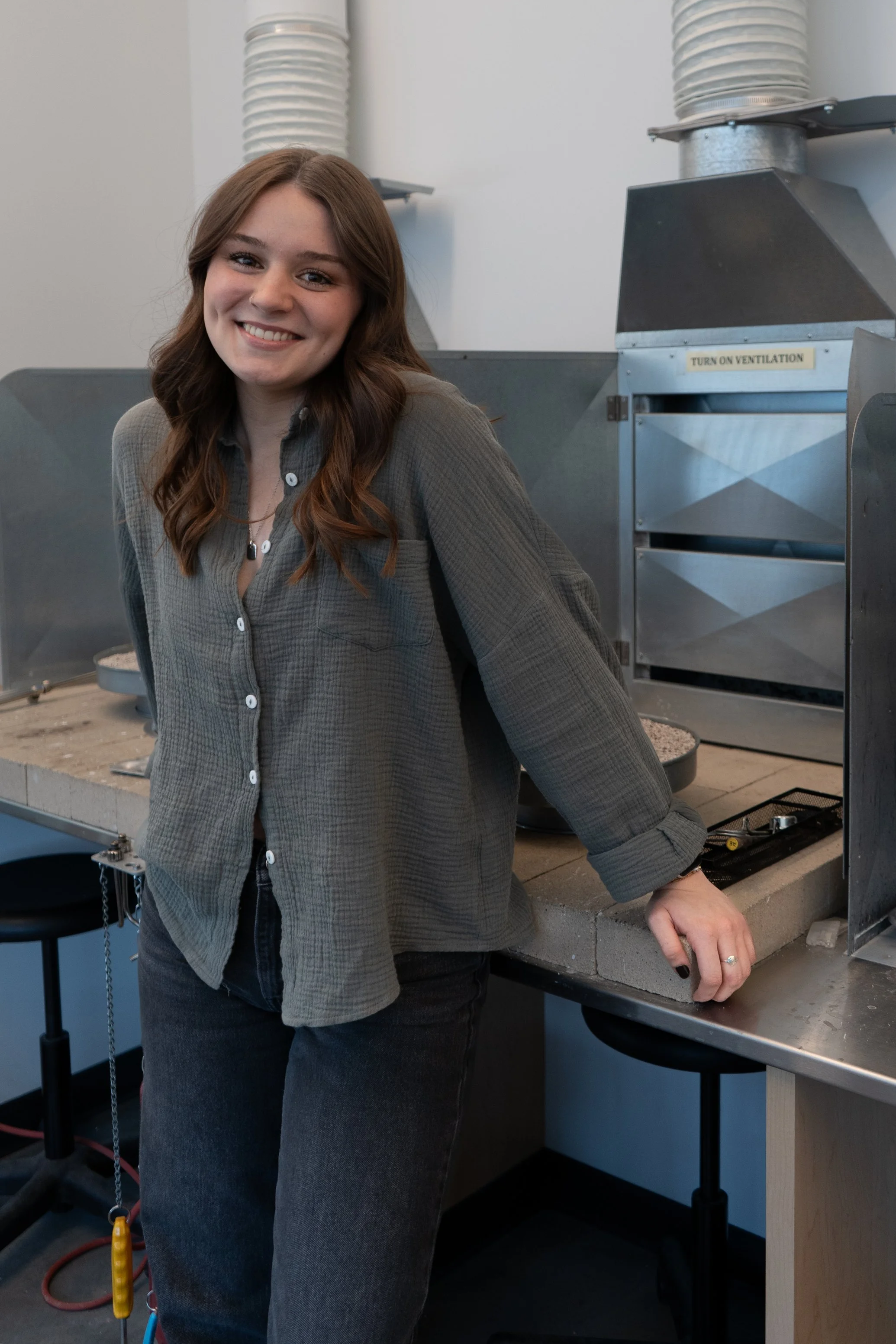 Camryn is soon to be an Orange County-based artist whose work centers on family, memory, and connection. First drawn to art through painting, she developed a lasting appreciation for creating as a way to capture emotion and meaningful moments, an influence that continues to shape her practice. Now studying jewelry and metalsmithing, Camryn transforms personal narratives, family traditions, and shared experiences into wearable and sculptural forms. Her work balances intentional craftsmanship with a sense of joy, resulting in pieces that are both visually engaging and deeply sentimental. She aims to create pieces that do more than adorn, offering objects that connect, commemorate, and hold lasting meaning.